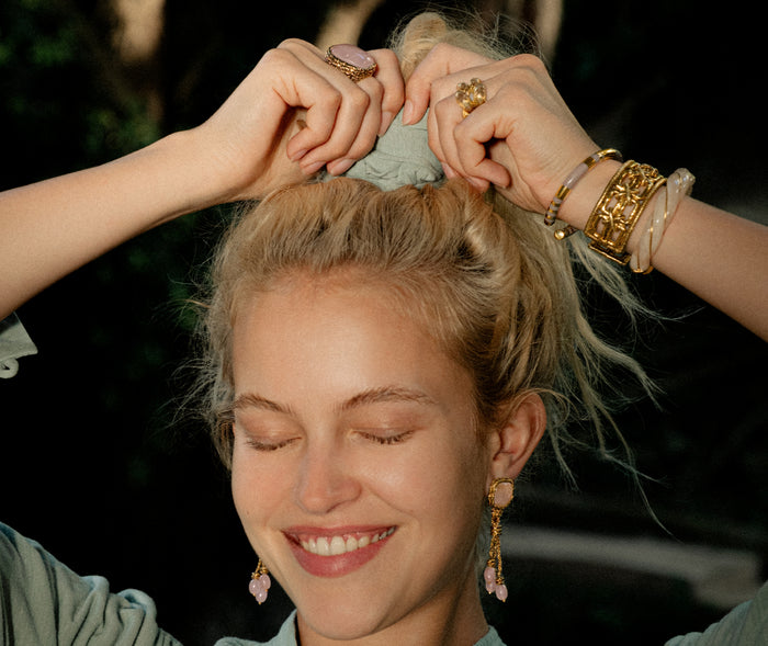 Les bracelets, bagues et manchettes s'accumulent, rien n'est jamais too much quand on porte du Aurélie Bidermann