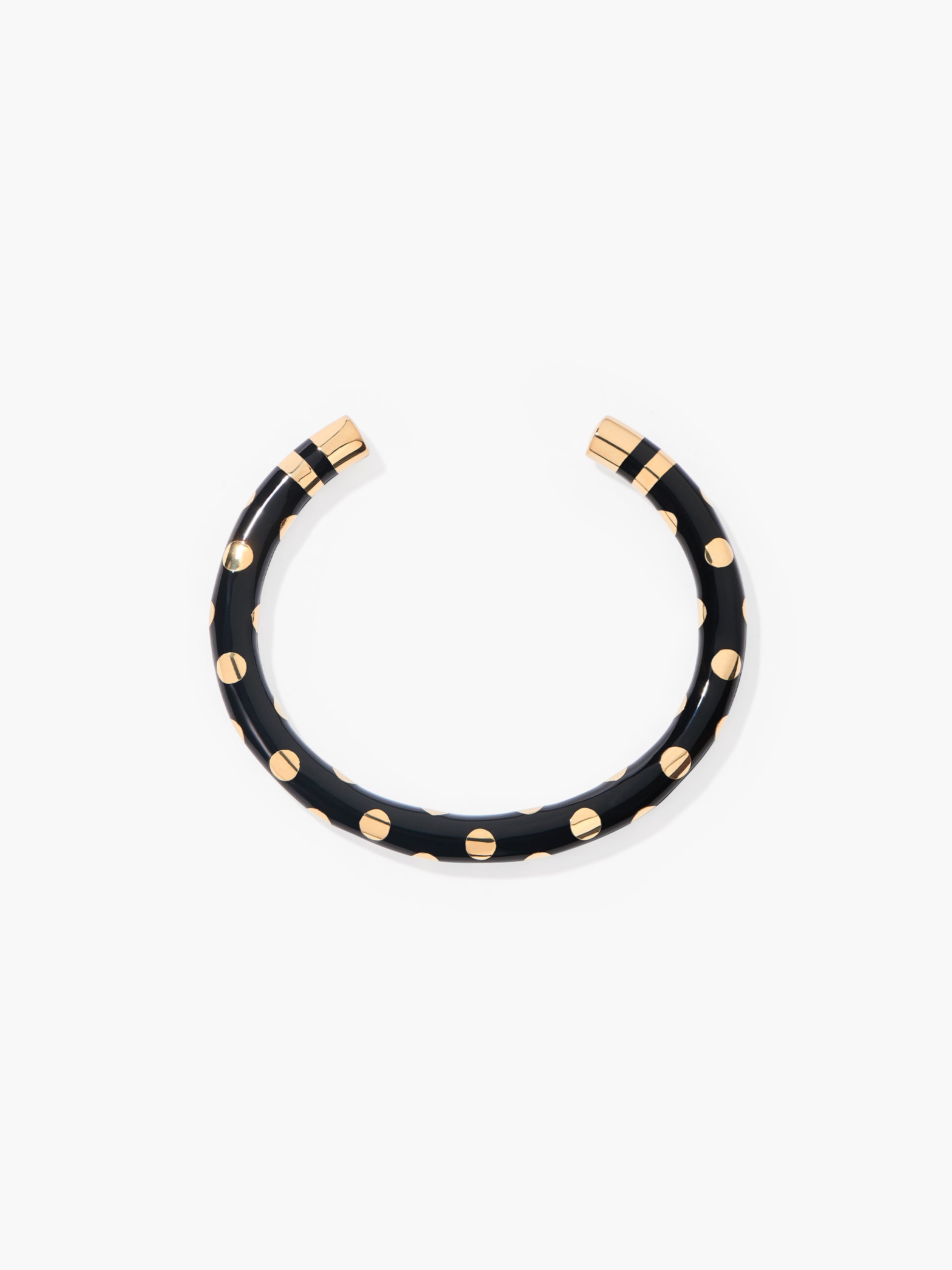 Positano black bangle with golden polka dots gilded in 750/1000 yellow gold.