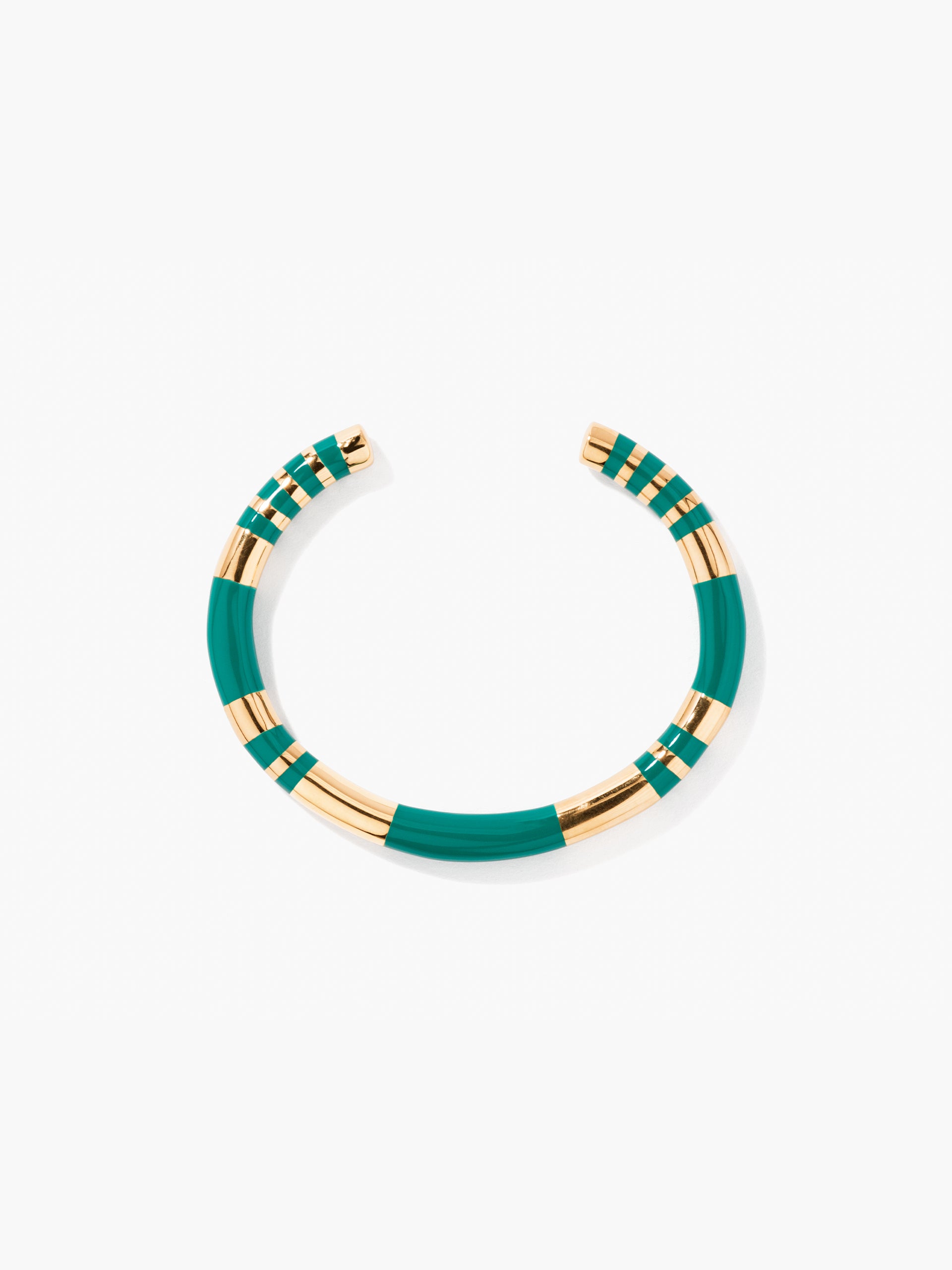 Emerald-green striped Positano bangle in resin and gilded with 750/1000 yellow gold.