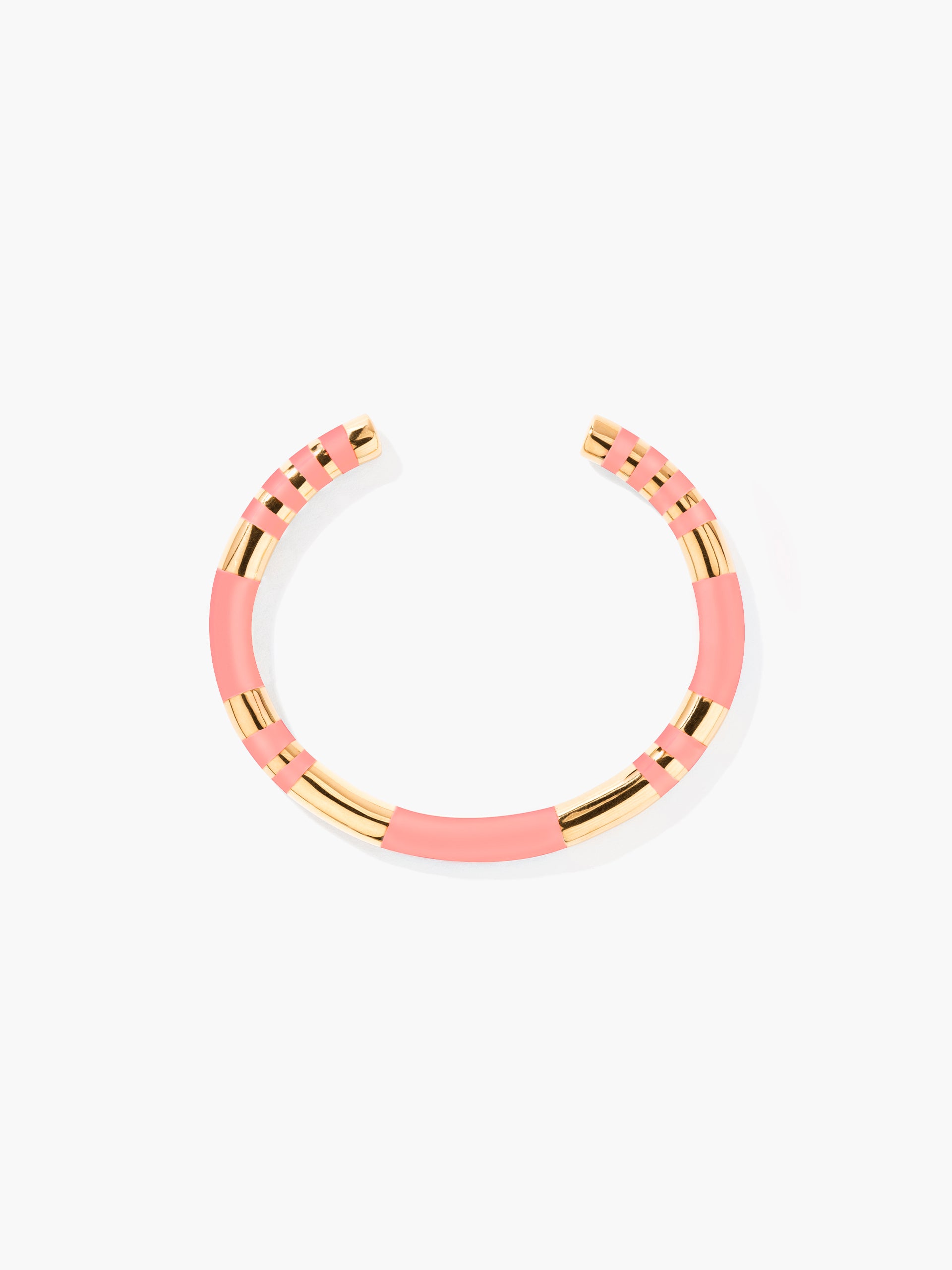 Pink-striped Positano bangle in resin and gilded with 750/1000 yellow gold.