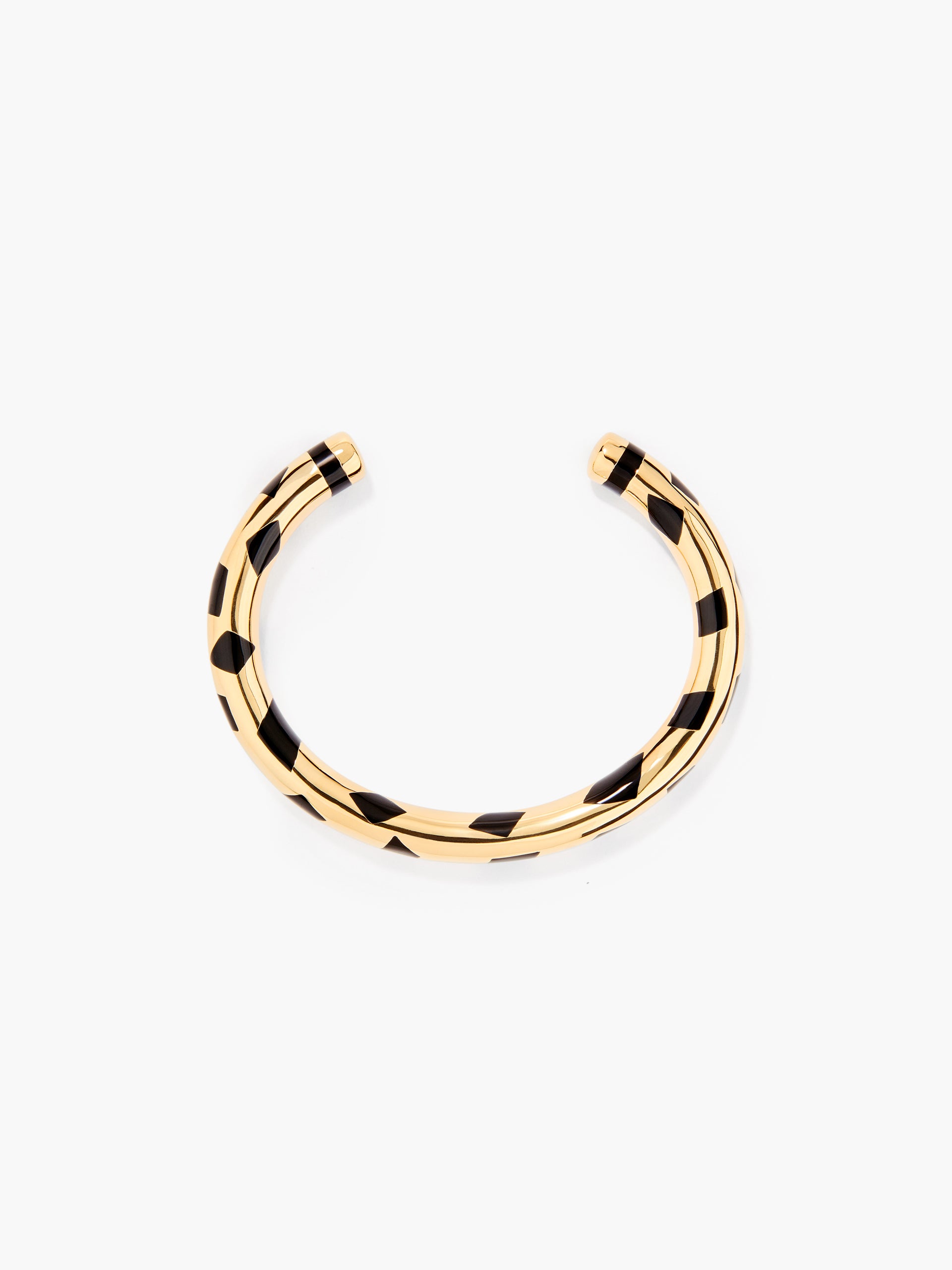 Positano black check bangle in resin and gilded with 750/1000 yellow gold.