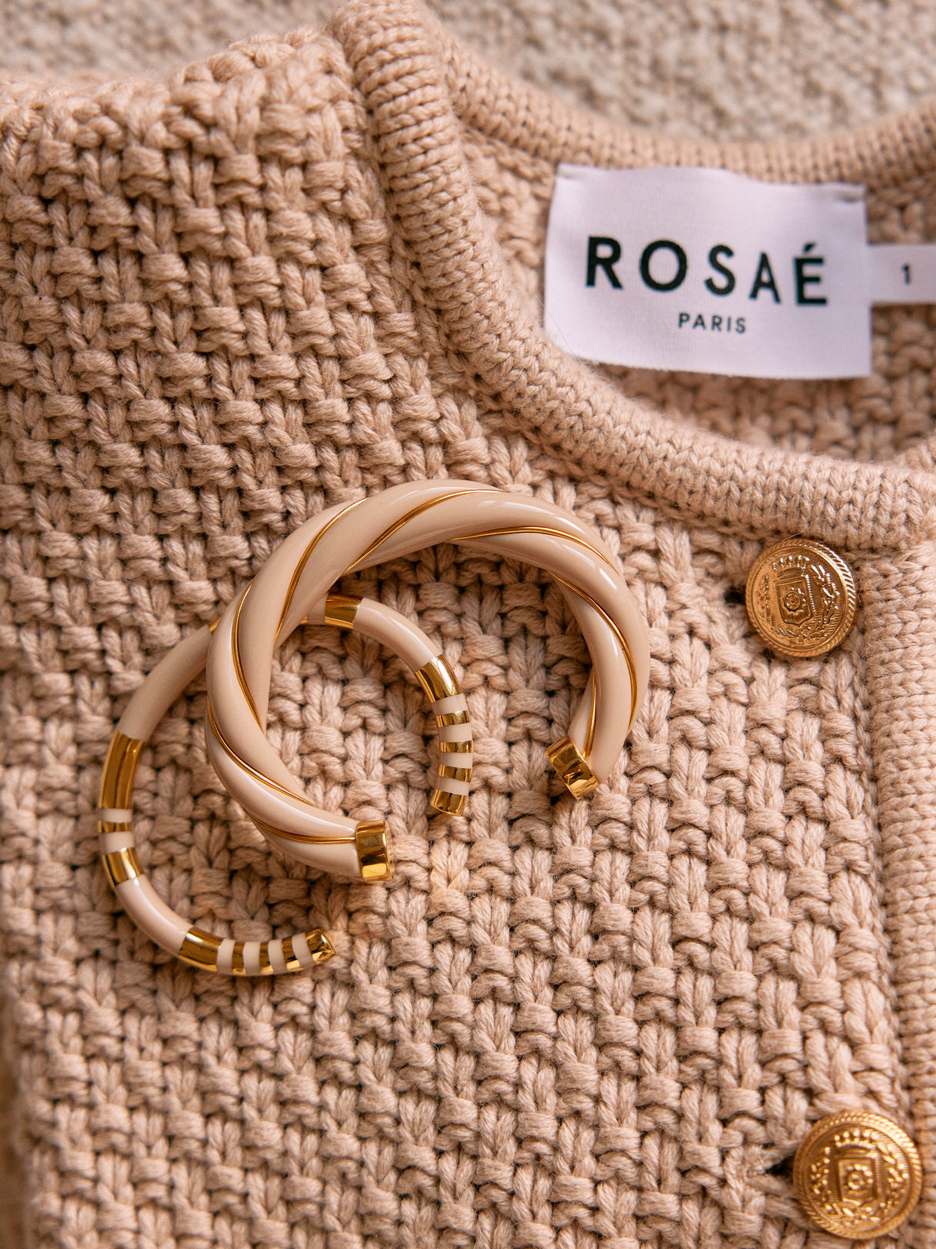 The collaboration gives birth to two bracelets in innovative colors, a blend of the timeless spirit of Rosaé Paris with the elegant shapes of Parisian Maison Aurélie Bidermann. The new praline color blends into the bakelite stripes of the Positano and twists under the yellow gold filaments of the Diana. These revamped bracelets are a real nod to Rosaé Paris' best-selling Le Francisco mesh (photo opposite) and its palette of soft, creamy tones.