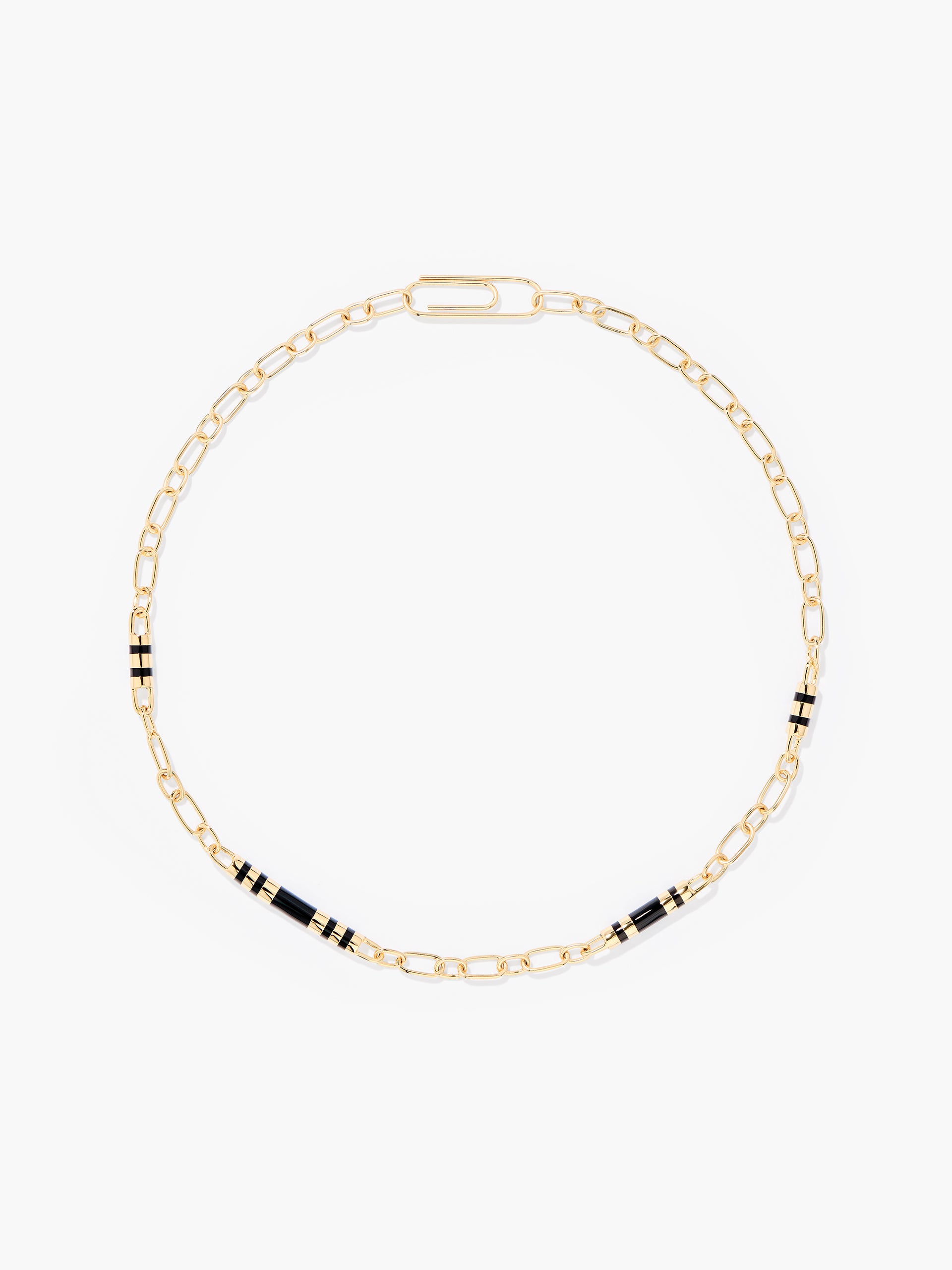 Positano necklace with black stripes in resin and gilded with 750/1000 yellow gold.