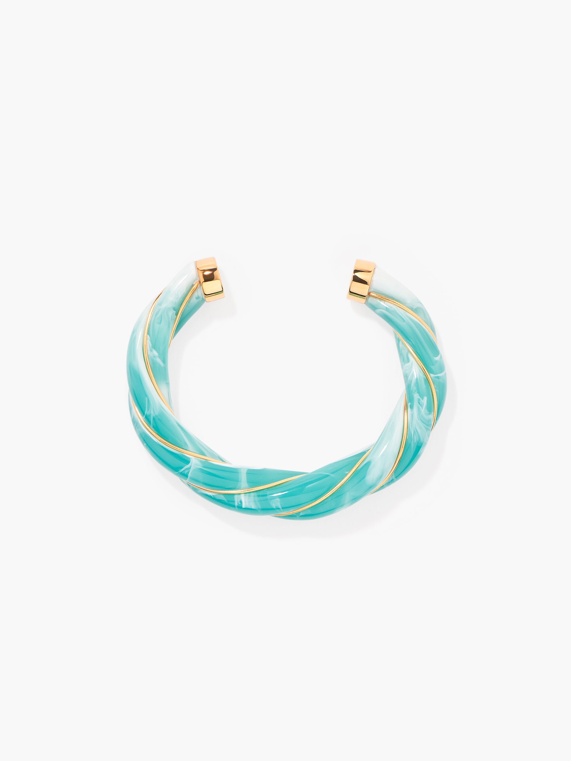 Inspired by the hippie torques of the 60's, this bangle is crossed with a yellow gold covered thread that becomes a vine or wisteria.
