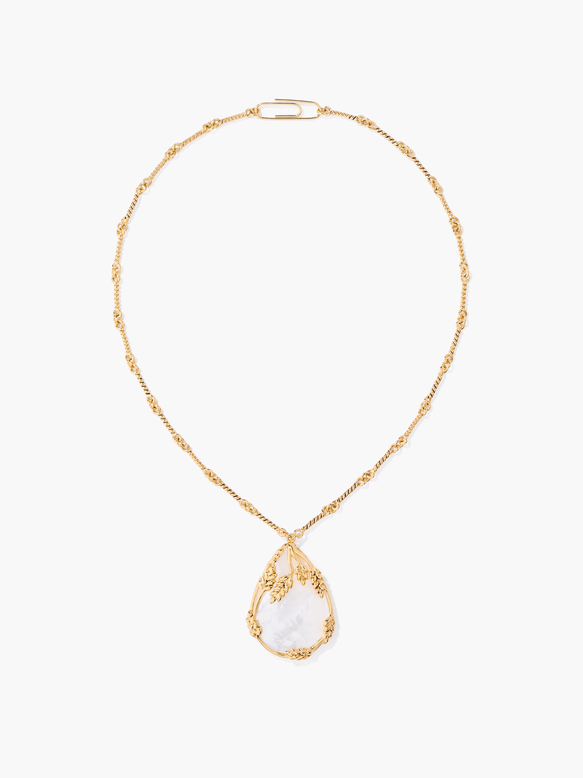 Françoise necklace, gilded with 750/1000 yellow gold, decorated with wheat and featuring a natural mother-of-pearl stone.