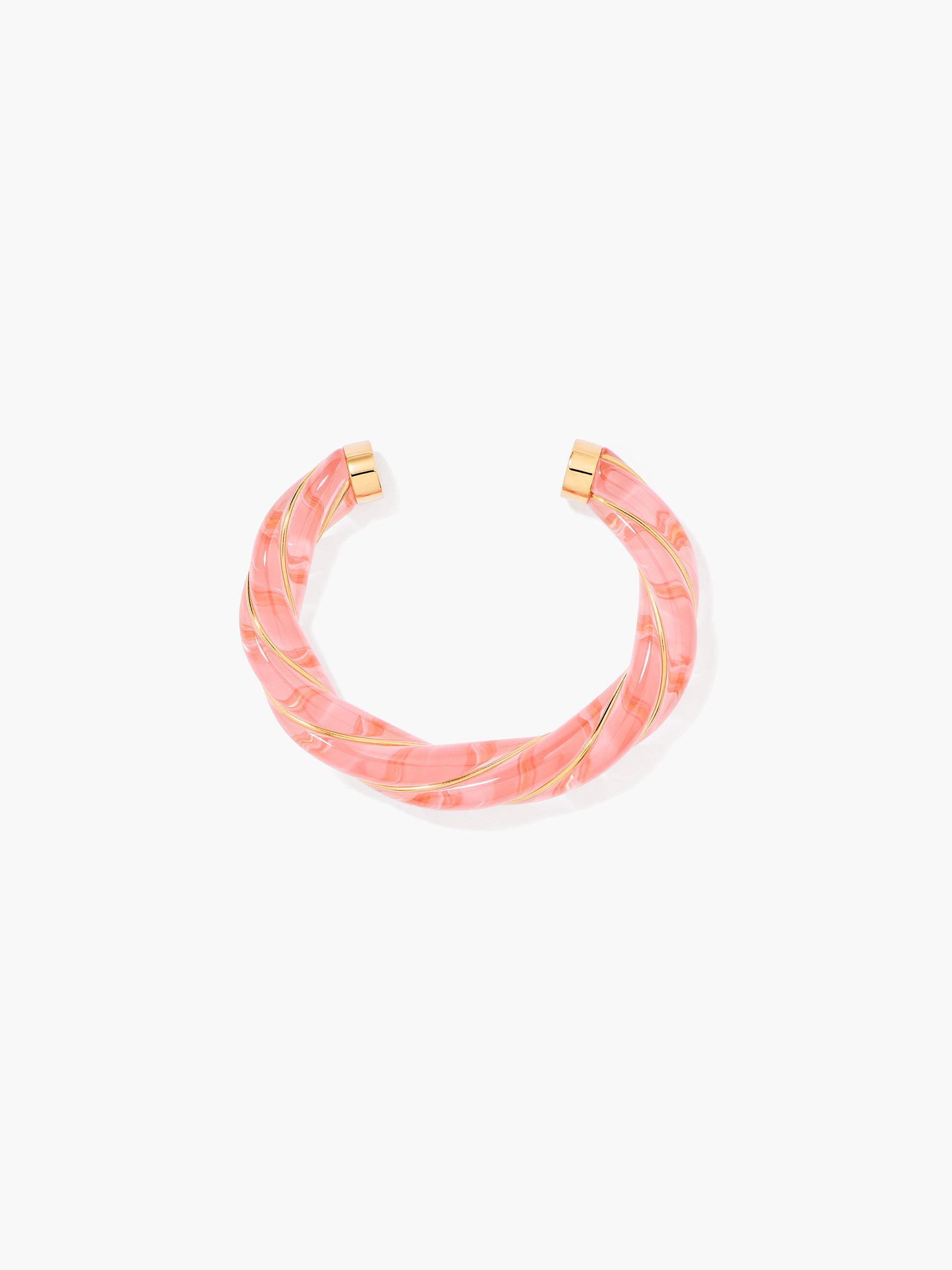 Diana twisted bangle in translucent pink resin, gilded with 750/1000 yellow gold.