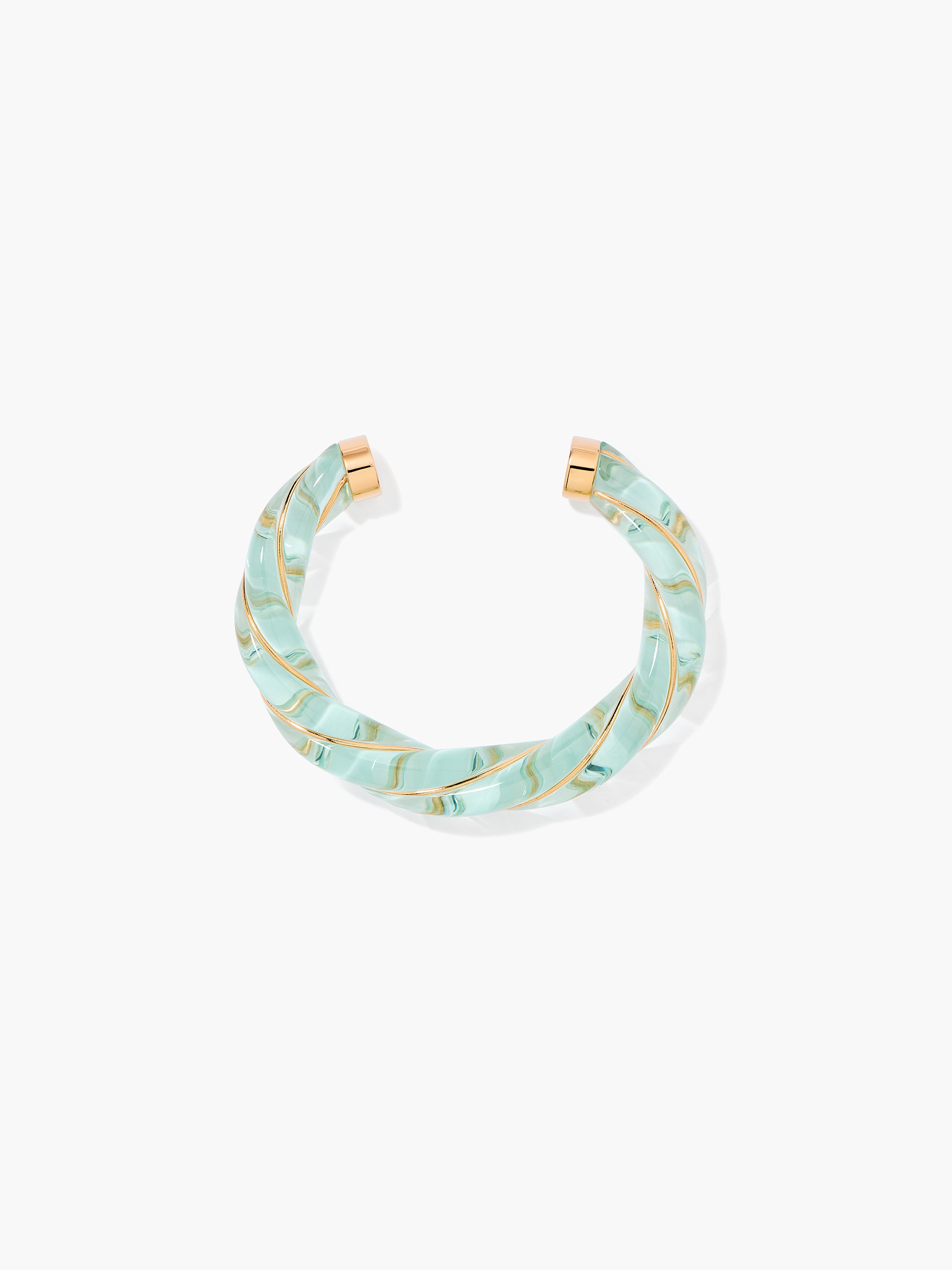 Diana twisted bangle in translucent green resin, gilded with 750/1000 yellow gold.