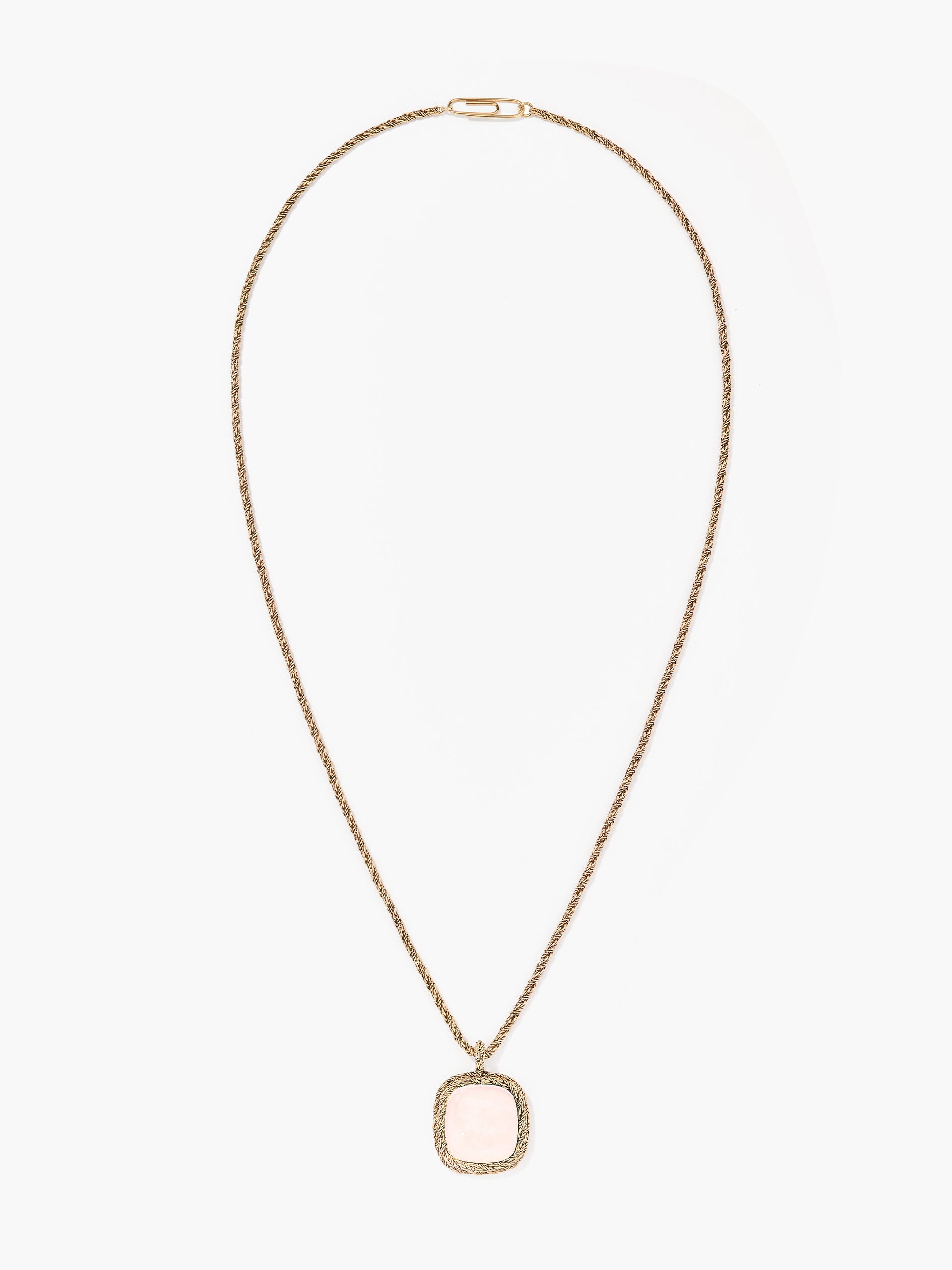 Miki long necklace gilded in 750/1000 yellow gold and pendant set with a rose quartz stone.