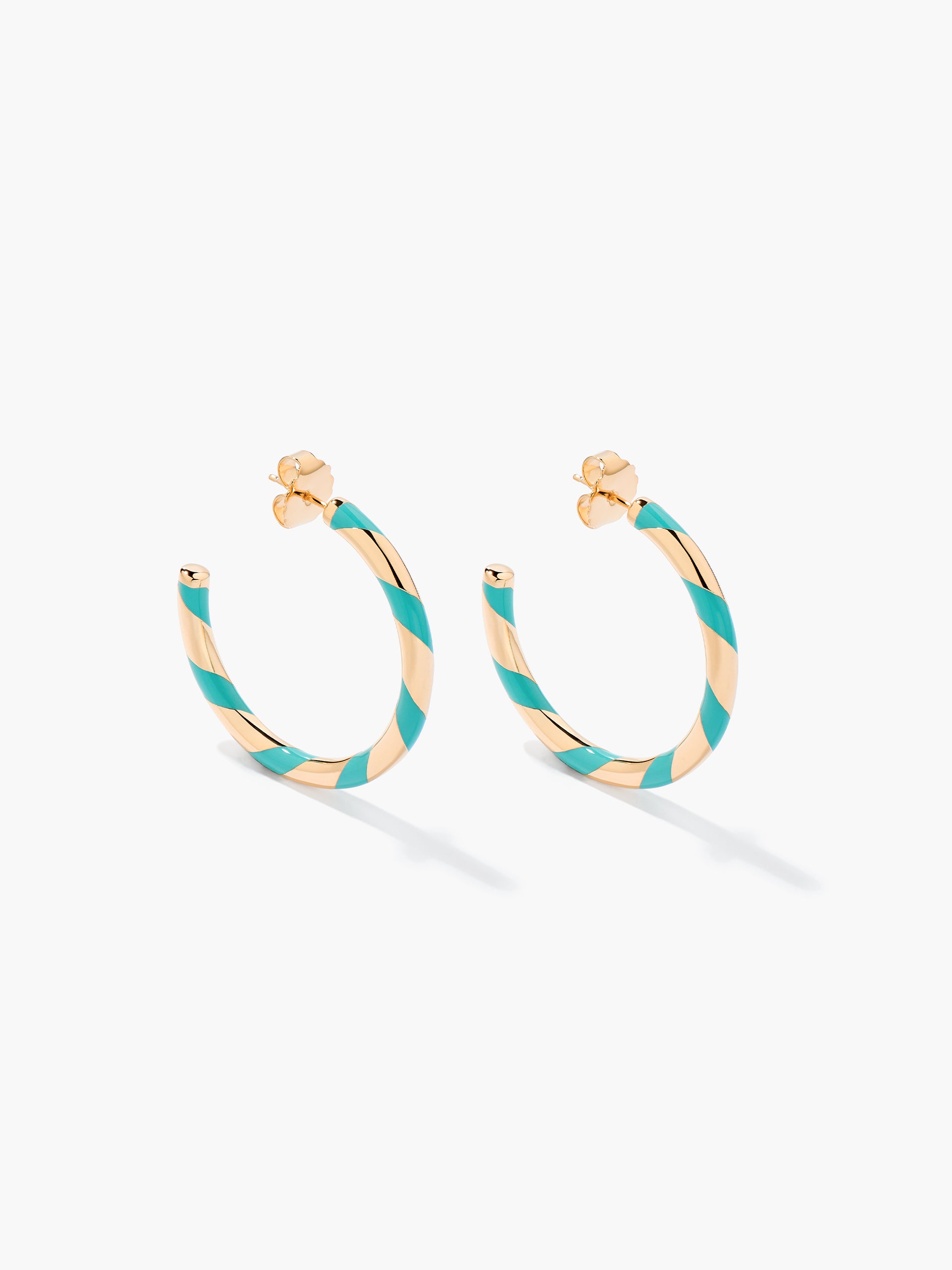 Créoles Positano à rayures acqua en résine et dorées à l'or jaune 750/1000.
