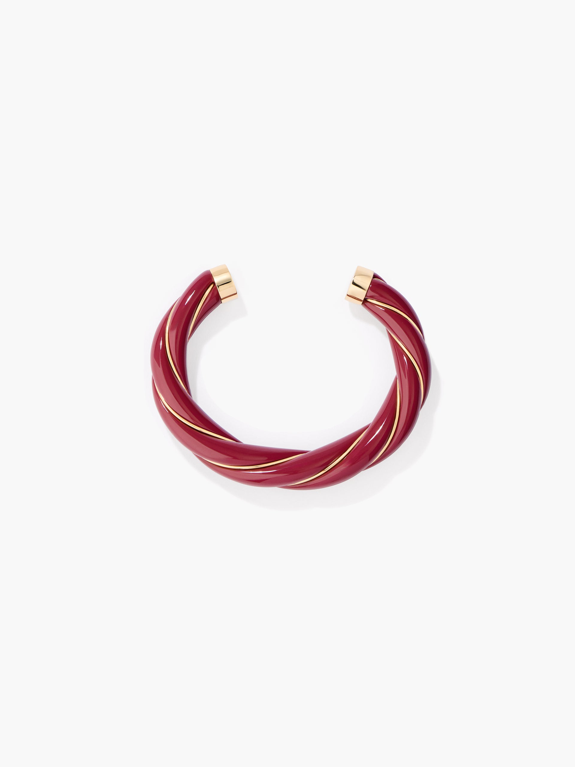 Jonc Diana torsadé en résine coloris bordeaux, doré à l'or jaune 750/1000.