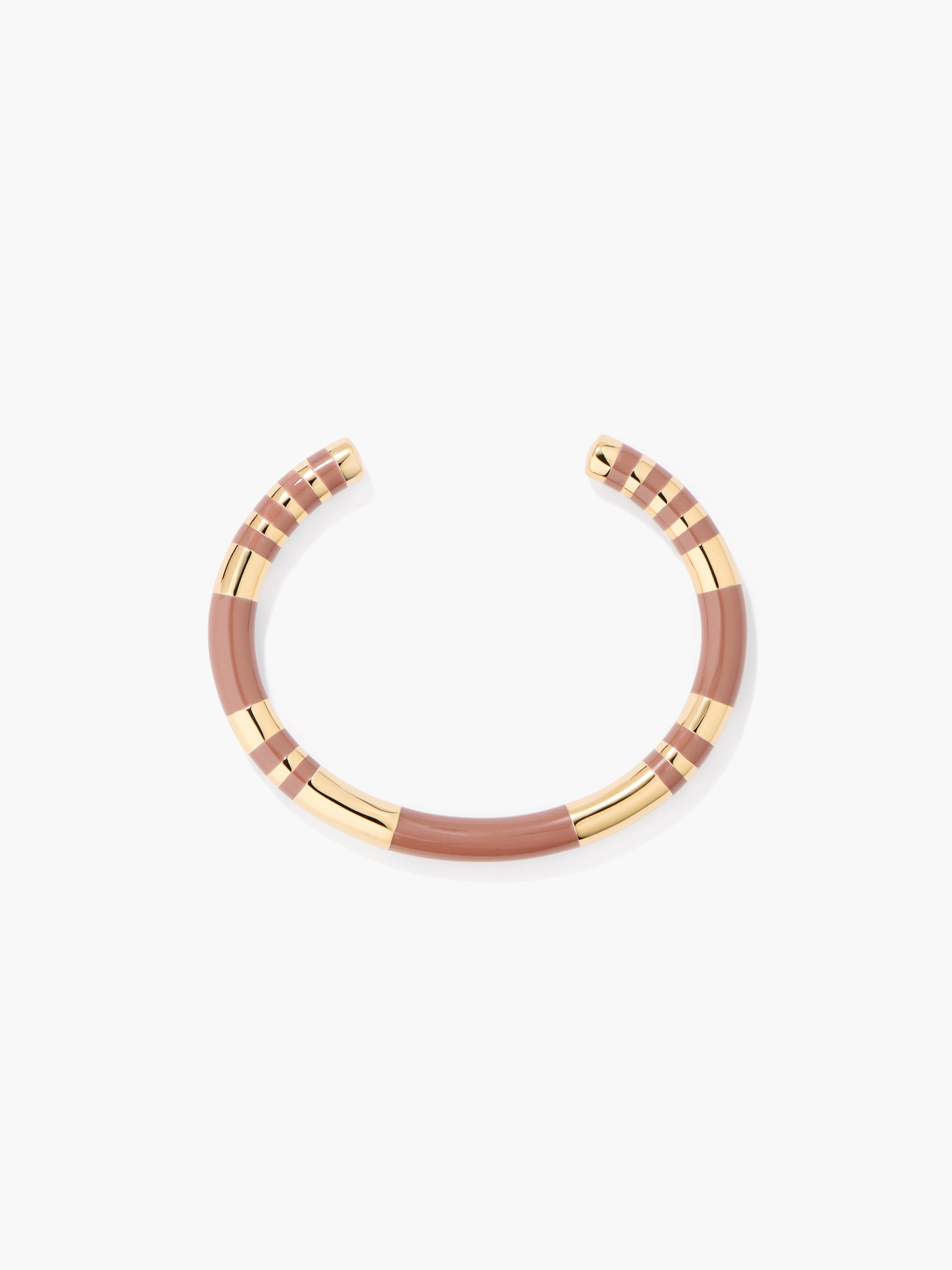 Jonc Positano à rayures cappuccino en résine et doré à l'or jaune 750/1000.