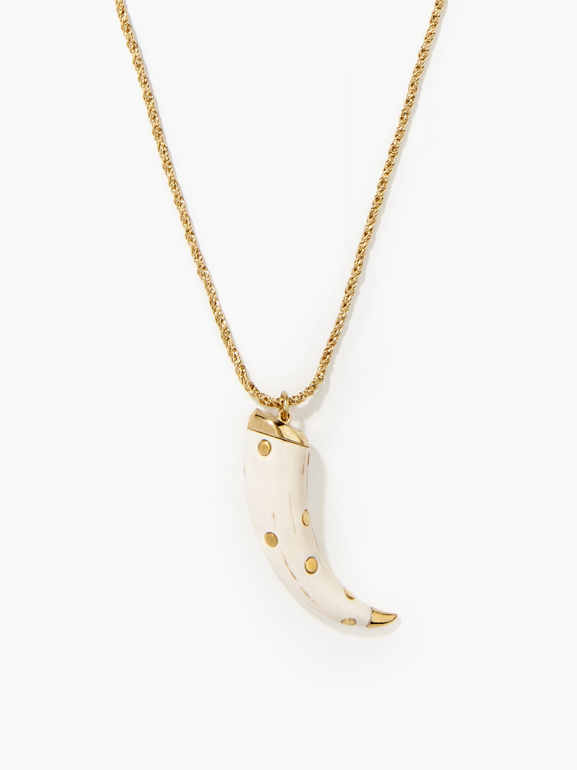 Sautoir Caftan Moon en bakélite de coloris ivoire et clous doré à l'or jaune 750/1000.